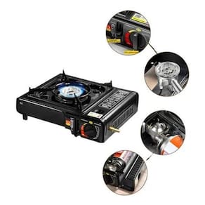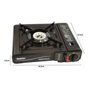 Fogareiro Fogão Portátil A Gás Flex Pescaria Camping Picnic É ideal para uso em casa ou para uso em camping. É todo feito em aço pintado e de fácil instalação e utilização. O Fogareiro Camping vem com um apoio de panela removível, o que facilita a limpeza após o uso. Para acender, nada de fósforos: você utiliza o sistema piezo de ignição automático, garantindo mais segurança e praticidade para o uso. Ao acender, você pode regular a chama para não gastar mais gás do que o necessário. Consumo de Gás: 145g/h Cor: Preto Material: Aço pintado com epóxi revestida atóxico Tipo de Cartucho: Cartucho de gás não incluso Atenção: Produto não acompanha cartucho de gás Medidas: Comprimento: 34,3cm Largura: 27,5cm Altura: 8,2cm Peso sem a lata e sem a maleta : 1,86kg Marca: Sg Utilidades