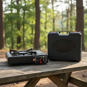 Fogareiro Portátil em Aço Inox – Compatível com Gás Butano e GLP | Chama Regulável e Trava de Segurança
