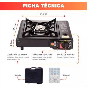 Compatibilidade com Gás Butano e GLP: Utilize o cartucho de gás butano em ambientes externos ou conecte ao botijão de GLP quando necessário – mais autonomia e flexibilidade para o dia a dia.