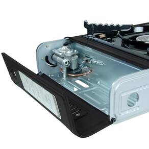- Acendimento automático (ignição eletrônica): Dispensa fósforos e isqueiros, garantindo mais segurança e agilidade. - Controle de chama ajustável: Permite preparar desde um café rápido até refeições completas com precisão. - Construção resistente: Feito em aço esmaltado com enamel atóxico — fácil de limpar e feito para durar. - Sistema de segurança inteligente: Bloqueio automático de gás em caso de sobrepressão, evitando riscos. - Portátil e prático: Acompanha maleta para transporte, ideal para levar em campings, trilhas ou pescarias.