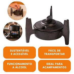 Seu funcionamento a álcool proporciona uma fonte de calor rápida e constante, permitindo o preparo de diversos pratos com praticidade e segurança. Ideal para preparo de refeições em acampamentos, piqueniques, viagens e uso doméstico.