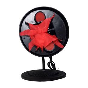 Composição: Possui 2 Lâmpadas com Luzes Laranja e Vermelha para o efeito da Fogueira, 3 Tecidos para o efeito da fogueira, 1 Cooler para gerar ar para a fogueira e Base em Plástico preto onde ficam fixados os componentes.