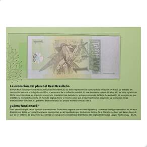 Folder Encarte para Cédula de 1 Real Brazil 1994-2024 Beija-FlorO Folder Encarte para Cédula de 1 Real Brazil 1994-2024 Beija-Flor descreve com detalhes os vários elementos que compõem a cédula de 1 Real Brazil 1994-2024, além de apresentar as cores reais dessa cédula.Para armazenar a cédula, você deve abrir o plástico pela lateral esquerda e então ajustar a cédula. Este anúncio NÃO inclui a cédula.Informações Técnicas:Dimensão Fechada: L: 20,5cm x A: 14,3cmDimensão Aberta: L: 20,5cm x A: 28,6cm Marca: Banco Colecionável do Brasil