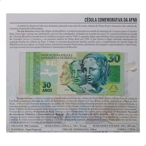 Folder Encarte para Cédula de 30 Anos Associação Filatélica e Numismática de BrasíliaO Folder Encarte para Cédula de 30 Anos Associação Filatélica e Numismática de Brasília descreve com detalhes os vários elementos que compõem a cédula de 30 Anos Associação Filatélica e Numismática de Brasília, além de apresentar as cores reais dessa cédula.Para armazenar a cédula, você deve abrir o plástico pela lateral esquerda e então ajustar a cédula. Este anúncio inclui a cédula.Informações Técnicas:Dimensão Fechada: L: 20cm x A: 14,3cmDimensão Aberta: L: 20cm x A: 28,6cm Marca: Banco Colecionável do Brasil