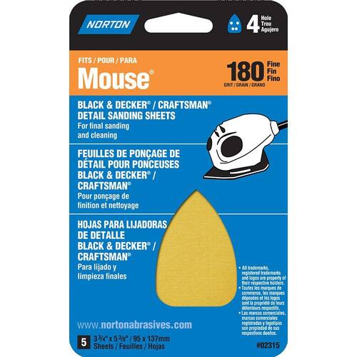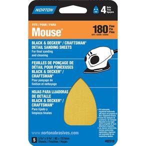 Norton 07660702315 ferro forma Lixa para Preto e Decker/Artesão mouse Sander, Gancho e laço, comprimento 7 " x 3 " largura, P180 Grit, Fine Grau (pacote com 5)