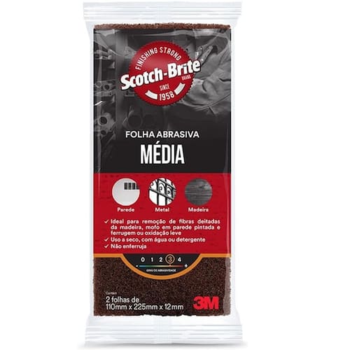 SUBSTITUI PALHAS E LÃ DE AÇO. O material da Folha de Acabamento Scotch-Brite é feita de uma manta não tecida de fibras sintéticas, unidas com resina a prova d?água e impregnada com mineral abrasivo.
