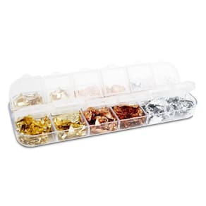 O kit inclui cores vibrantes que trazem uma aparência moderna, criativa e ousada às unhas, incluindo o bronze que está muito em alta nas decorações a combinação dessas três cores resultará em uma arte linda. Acompanha caixa de plástico com divisórias e tampas para melhor conservação e organização evitando desperdícios e sujeira em seu uso e aplicação. Folhas cortadas em diversos tamanhos.