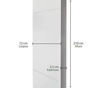 Nossas Folhas de Porta têm por padrão 210cm de altura, 3,5cm de espessura e 9 opções de largura, aumentando suas possibilidades na configuração do seu espaço. Ambientes Recomendados: Interno Acompanha Batedor: Não Acompanha Batente: Não Acompanha Dobradiça: Não Acompanha Fechadura: Não Acompanha Ficha Técnica: Não Acompanha Guarnição: Não Acompanha Manual de Instalação: Não Acompanha Puxador: Não Acompanha Trinco: Não Altura: 210 cm codigo_ean: 7898966040719 Cor: Branco Elétrica: Não Espessura: 3,5 cm Imune à corrosão: Não Informações Complementares: Ideal para ambientes internos. Pode ser utilizada para porta de giro ou de correr. Isolamento Acústico: Não Itens Inclusos: 1 Folha de porta Lado de abertura: Definido na Instalação Largura: 72 cm Largura do Batente: 3,5 cm Manual de Montagem e Instalação: https://product-hub-prd.madeiramadeira.com.br/739073/documents/f4e1c533-8b37-4d54-bfd2-0499095dd164acaofolhadeportacasablanca.pdf Material Principal: Madeira Necessita Montagem: Não Número de Folhas: 01 Origem do Produto: Nacional Peso: 12 kg Possui friso: Sim Possui Grade: Não Possui Vidro: Não Preenchimento da Porta: Colmeia Quantidade de Folhas: 01 Recomendações de Uso, Manutenção e Limpeza: O produto não é indicado para exposição direta ao sol e à chuva. Não utilizar em áreas externas. Não acompanha batente, guarnição e ferragens. Resistência à Maresia: Não Resistência a umidade: Não Tipo de Madeira: Pinus Tipo de Parede: Alvenaria, Drywall, Madeira Tipo de Porta: Abrir Vidro incluso: Não Ean: 7898966040719