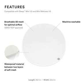 - Compatibilidade: o mini lençol de proteção V3 é compatível com o Sleepi Mini V2 e o Mini Colchão V3. Foi projetado exclusivamente para caber no tamanho oval do nosso berço exclusivo.
