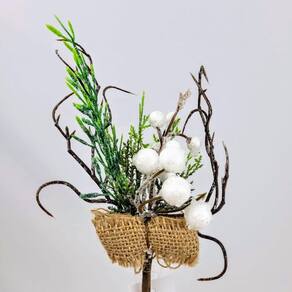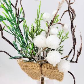 Folhagem de natal pick branco com laço 23x12x4cm Vem decorar, seja inigual
