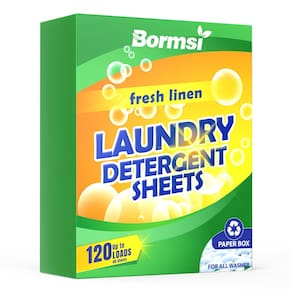 - Suave e amigo da pele: os lençóis de detergente para roupas BORMSI são gentis com a pele sensível, sem alvejante, sem corantes, sem parabenos, sem fosfato, sem ftalatos, funcionarão em qualquer máquina de lavar/lavadora padrão