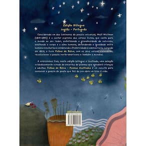 A nVersinho traz, nessa edição bilíngue e ilustrada, uma seleç­­­­­ão de excertos de poemas do escritor Walt Whitman. Os poemas combinam temas que refletem a vastidão do universo, o milagre da vida e a consciência da igualdade entre as pessoas. FOLHAS DE RELVA POEMAS ILUSTRADOS é voltado tanto para as crianças, que terão a oportunidade de conhecer a poesia de Whitman, quanto para o público adulto que se sentirá abraçado pelos versos.