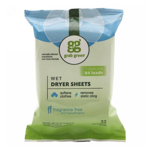 Folhas de secador molhado Fragrância Livre 32 Contagem por Grab Green