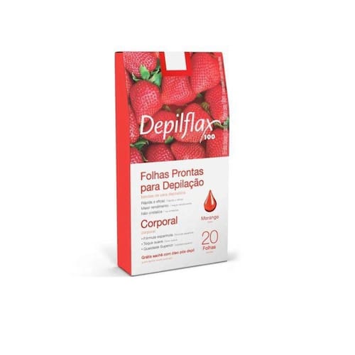 ESCRIÇÃO: Depiflax Folhas prontas para depilação corporal. Sua concentração de extrato de Morango deixa a pele suave, hidratada e nutrida.