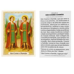 Folheto de Orações Santos da Fé 9 cm 100 Unidade Modelo: São Cosme e Damião Leve a fé com você em todos os momentos. Este folheto de Orações Santos da Fé é mais do que um simples impresso - é um elo espiritual com os santos protetores que acompanham sua jornada. Com orações selecionadas, ele traz alívio, força e proteção nos momentos em que o coração mais precisa. Compacto, leve e fácil de carregar, é ideal para deixar no altar, levar na bolsa ou presentear alguém especial. Um verdadeiro tesouro de fé para renovar suas esperanças a cada página. Imagens meramente ilustrativas Medidas aproximadas de casa oração: LxA 6,5 cm 9,5 Material: Papel Tire todas as suas Dúvidas antes de concluir a compra. Iremos responder o mais breve possível. Embalagem de Envio: Caixa de papelão ondulado, plástico bolha, conforme necessidade do produto. Ideal para o seu altar. Ótima resistência e durabilidade. Respostas das dúvidas mais frequentes na ordem: R1: Já realizamos milhares de entregas em todo o Brasil, somos especialistas no que fazemos. R2: Assim que seu pedido for despachado, esta plataforma envia para você o código de rastreamento. R3: Enviamos o produto 100% inspecionado e conferido em nosso checkout e são embalados em embalagem de papelão e plástico bolha. R4: O tempo de entrega irá depender totalmente do seu CEP, todos os nossos produtos saem de Capital. R5: Iremos despachar o seu produto o mais rápido possível, assim que for confirmado pela plataforma, enviamos em até 24h. R6: Nós queremos a sua satisfação, qualquer problema iremos te auxiliar em nossos canais de comunicações. Marca: Não Informado
