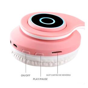 Características Gerais do produto Fone de ouvido bluetooth infantil cometros design de orelha de gato e ilumetrosinação de LED. Possui metrosicrofone integrado, função MP3, entrada para cartão SD, design dobrável e ajustável. Temetrospo de reprodução aproximetrosado de 7 horas.