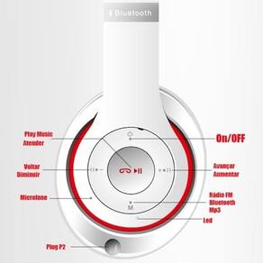 Fone Bluetooth com entrada para cartão de memória micro SD, Rádio FM, P2,Bateria Recarregável, Sincroniza por