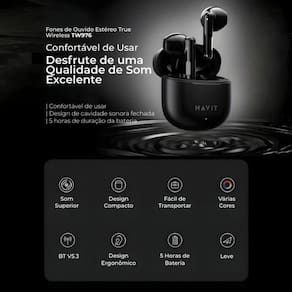 Fone Bluetooth TWS Havit TW976: A Liberdade Sem Fio com Tecnologia e Conforto de Elite O Áudio que Transforma Sua Rotina e Seu Game. Chegou o Fone TWS Havit TW976, o acessório definitivo para quem busca a união perfeita entre performance de áudio e liberdade total no seu dia a dia. Desenvolvido por uma das marcas mais conceituadas no cenário gamer, o TW976 herda a paixão por detalhes sonoros e a alta performance, entregando uma experiência imersiva não apenas para músicas, mas também para chamadas e jogos. Se você está cansado de fones com conexões instáveis, atrasos no som ou que machucam o ouvido, prepare-se para o futuro do áudio sem fio. Este fone é sinônimo de tecnologia de ponta, conforto ergonômico e som de qualidade HD. Sobre a Marca Havit: A Excelência Gamer Agora no Seu Áudio Pessoal A Havit é reconhecida globalmente por sua linha de periféricos de alta performance, sendo uma marca autoridade no mundo gamer. A expertise em criar equipamentos que exigem baixa latência, precisão sonora e durabilidade foi totalmente aplicada no desenvolvimento da sua linha de áudio. Ao escolher um Havit TW976, você não está apenas comprando um fone de ouvido, mas sim a de qualidade de uma marca que entende de performance e sabe que cada milissegundo e cada detalhe sonoro fazem a diferença. Trata-se de um produto que traz o DNA de alta performance da Havit diretamente para o seu uso diário, consolidando a marca como uma escolha inteligente e confiável no mercado brasileiro de áudio. Funcionalidades e Diferenciais do Havit TW976: Por Que Ele é a Sua Melhor Escolha O TW976 foi projetado para eliminar as frustrações comuns de fones sem fio e elevar sua experiência: Bluetooth V5.3 - Desempenho Imbatível Viés de Novidade : Equipado com a última geração do Bluetooth, a versão 5.3, o TW976 oferece o dobro da velocidade de transmissão, resultando em conexão ultrarrápida, latência baixíssima ideal para jogos e vídeos, evitando o incômodo atraso na voz e uma estabilidade de sinal aprimorada, além de ter o consumo de energia reduzido pela metade. Qualidade Sonora HD e Alto-Falantes Potentes: Com alto-falantes de 13mm, o áudio é potente e cristalino, entregando um som HD aspirado em modo estéreo. Desfrute de graves ricos e agudos claros, garantindo uma experiência musical notável ou a clareza total durante suas chamadas. Design Ergonômico e Discreto Viés de Conforto : Seu formato Earbuds é pequeno, leve e discreto. Com um tamanho que se assemelha à ponta do dedo, ele se ajusta perfeitamente aos contornos do ouvido, sendo quase invisível e garantindo máximo conforto, sem dor ou pressão. Controle Total na Ponta dos Dedos: Acesso fácil a comandos diretos no fone: atender/finalizar/recusar chamadas, assistente de voz, modo Game ON/OFF e controles de música. Praticidade que elimina a necessidade de pegar o celular a todo momento. Pareamento Automático Inteligente: Basta retirar o fone da case carregadora e ele se pareia automaticamente com o seu dispositivo, sem complicação. É a conveniência do plug and play na tecnologia TWS. Benefícios Exclusivos: Liberdade, Performance e Conforto: Experiência Livre de Lag: A tecnologia Bluetooth 5.3 garante transmissão em tempo real para chamadas e jogos, eliminando o irritante atraso do áudio e garantindo que você não perca nenhum momento crítico. Conforto para o Dia Todo: O design ergonômico e ultraleve garante que você possa usar o fone por horas sem desconforto ou sensação de peso, ideal para longas jornadas. Longa Duração de Bateria: Chegue a até 5 horas de uso contínuo para música e 3.5 horas em ligação, garantindo que o fone acompanhe sua rotina. A case fornece recargas adicionais. Portabilidade Extrema: Leve e discreto apenas 28,4g no total , é o companheiro ideal para esportes, trabalho ou lazer, cabendo em qualquer bolso. Compatibilida Homologação Anatel: 056562412374