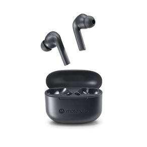 Fone de ouvido Bluetooth TWS com cancelamento de ruído ativo, microfone embutido em cada fone, resistente à água IPX4, design ergonômico com três tamanhos de ponteira, capa de carregamento compacta e rápida. Tecnologia Bluetooth 5.0, alcance de 10 metros, som HD, compatível com assistente de voz. Tempo total de reprodução de até 18 horas (6h nos fones + 12h no estojo). Capacidade de energia de 60mAh nos fones e 300mAh no estojo. Tensão de 5 Volts.