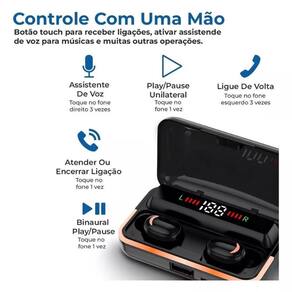 Fone de ouvido bluetooth tws m10 + power bank 2000mah Fone de ouvido bluetooth tws f9-5 bluetooth 5.0, power bank carrega cerca de 5 a 15 % da capacidade da bateria do celular e com microfone para atender chamadas telefônicas.