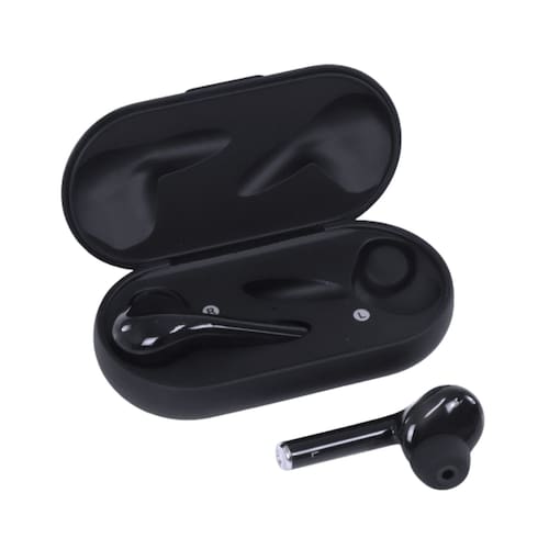 Itens inclusos: 1 par de fones, 1 estojo carregador, 1 cabo usb, 1 manual de instruções, 2 pares de borrachas auriculares extras.