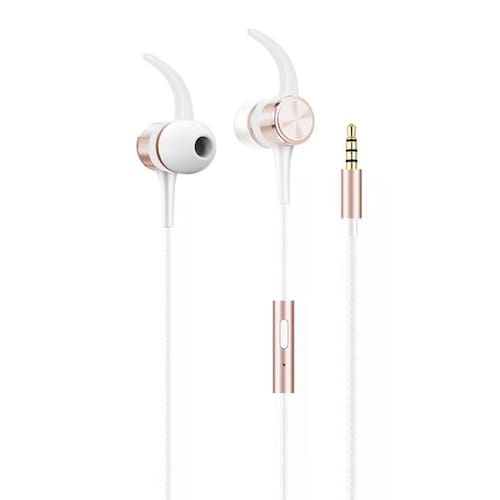 Fone De Ouvido Com Fio Microfone Rose Gold Esfnrg Geonav Controle músicas e atenda chamadas. Com cabo reforçado e imãs nas laterais, permite que os fones fiquem pendurados ao redor do pescoço. Oferece som balanceado e encaixe preciso na orelha.