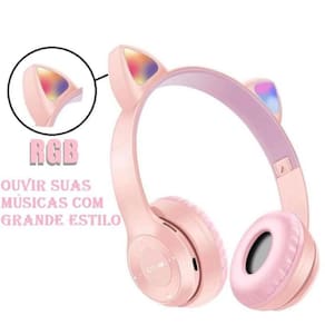 Fone de ouvido gatinho bluetooth infantil led