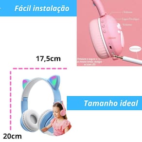 Fone de ouvido gatinho rosa sem fio lultra rápido com luz led