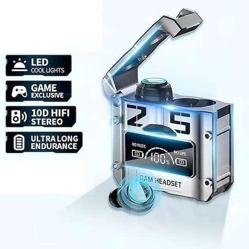 Fone de ouvido m25 prata bluetooth wireless v5.3 gamer led Descubra o fone de ouvido sem fio m25, um dispositivo moderno e funcional que oferece qualidade de som superior tanto para ouvir músicas quanto para experiências imersivas em jogos. Com um simples clique, alterne facilmente entre o modo de música e o modo de games, garantindo áudio otimizado para cada necessidade.