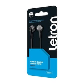 Fone De Ouvido P2 Letron Classic Preto Earbuds Com Fio E Mic Para ouvir as clássicas, o nosso clássico que não decepciona nunca. Fone de Ouvido Intra-Auricular Classic Preto Letron. Com design clássico que todo mundo ama no estilo, ele é aquele básico super necessário em todas as atividades da rotina, desde o trabalho ou lazer, estudos ou até deslocamento entre locais. Todo mundo sabe que uma boa trilha sonora faz diferença, né? E o melhor, ele é plug e play, basta conectar e sair usando, sem depender de energia ou instalação de drive. Vem ver mais: - Conexão P2, com dois canais de entrada, um para cada alto-falante - Cabo com 1,2 metros: tamanho ideal para se mexer; - Drivers de 10 mm estéreo, para ótima experiência sonora.