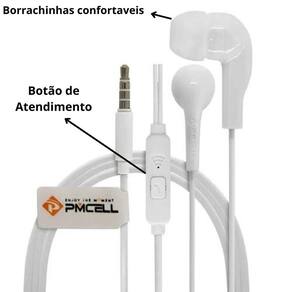 Fone de ouvido com borrachinha, isola ruídos externos e possui ótimos graves. Possui microfone embutido para atender chamadas. Conector P2/P3 3,5 mm do tipo 3 vias (áudio L-R e microfone). Frequência de resposta: 20 Hz - 20 kHz. Unidade do diafragma: 10 mm. Impedância: 32 Ohms. Sensibilidade: 95 dB. Potência: 100 mW. Comprimento do cabo: 120 cm.