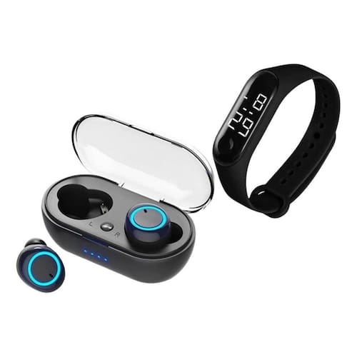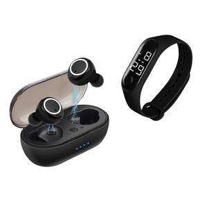 2 x fones de ouvido 1 x caixa de carregamento 1 x relógio digital