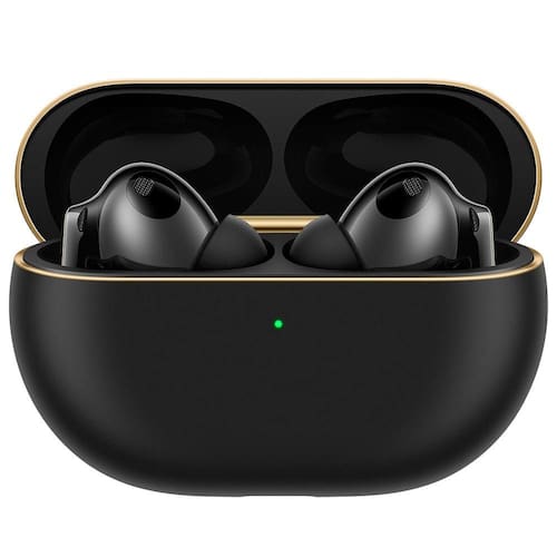 O estojo de carregamento funde couro sintético liso com metal futurista, e os fones de ouvido vêm em duas cores deslumbrantes, bege e preto.