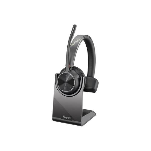 Fone de ouvido sem fio Poly - Voyager 4310 UC + suporte de carregamento (Plantronics) - Fone de ouvido único com microfone - Conecte-se ao PC/Mac via adaptador Bluetooth USB-A, telefone celular via Bluetooth - Funciona com equipes, zoom e muito mais