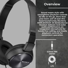 pacote inclui: Sony MDR-ZX310AP ZZFone de ouvido estéreo da série (preto) e capa para fone de ouvido - Controle de reprodução de smartphone: o fone de ouvido estéreo dobrável com fio da série MDR-ZX310AP da Sony oferece controles integrados
