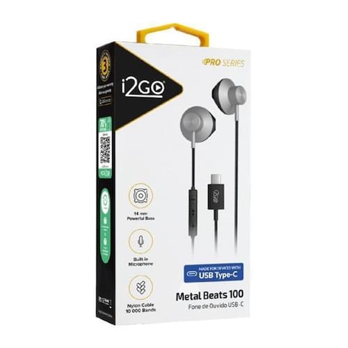 Fone De Ouvido Usb-C I2Go Metal Beats 1,2M Preto E Cinza