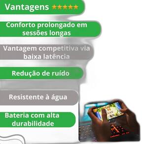 Fone tws gamer com tecnologia de áudio avançada e conforto extra Descrição do anúncio: Experimente a adrenalina de mergulhar na cena de outra maneira com os fones de ouvido específicos para jogos, você não perde nenhum detalhe e ouve o áudio como ele foi pensado pelos criadores. Ideal para gamers, estes fones oferecem baixíssima latência de 50ms, garantindo conectividade excelente e sem atraso. Além disso, são perfeitos para o dia a dia, proporcionando som de altíssima qualidade para músicas e um design inovador com luzes de led no fone e na case de carregamento.