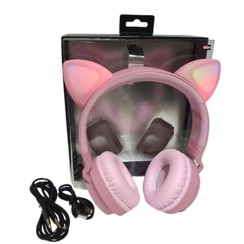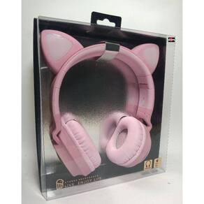 Fone Personalizado Gatinho, Recarregável Via Bluetooth, Modelo Dobrável, Atende E Realiza Ligações Com Almofadas No Ouvido Proporcionando Um Uso Agradável -cor rosa -material plástico -via bluetooth -alcança até 10 m -saida para cabo auxiliar