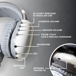 Fone De Ouvido Sem Fio Bluetooth V5.3 Com LED RGB Headset Bluetooth Disco Pulse