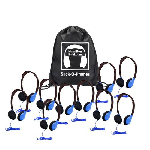 IMPORTANTE: Se for um produto elétrico, ele pode ser compatível com uma tomada de 110 volts. Se utilizado fora dos Estados Unidos, pode ser necessário um conversor de voltagem para garantir a operação adequada. Verifique se o produto que você está comprando é elétrico antes de considerar essas informações. HamiltonBuhl Sack-O-Phones, 10 fones de ouvido pessoais em uma bolsa de transporte, azul