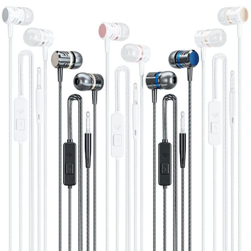 Fones de ouvido com fio e microfone, pacote com 5 unidades,