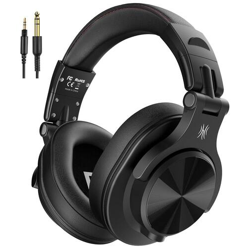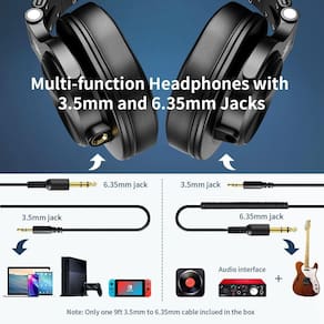 Fones de ouvido OneOdio A71 para gravação de estúdio de alta resolução - Fones de ouvido com fio com SharePort, fone de ouvido dobrável de mixagem profissional com som estéreo, conector de 3,5/6,35 mm para PC, computador e guitarra de DJ - Som baixo: desfrute do som nítido e do conforto supremo com os fones de ouvido OneOdio FUSION. Os drivers de ímãs de neodímio oferecem graves potentes e detalhes nítidos, ótimos para tocar instrumentos musicais como guitarra, bateria eletrônica e ouvir música, etc. - Construídos para permanecerem confortáveis: as almofadas de ouvido macias e acolchoadas são projetadas especificamente para monitorar o conforto dos fones de ouvido e o isolamento de ruído. A faixa de cabeça é ajustável e elástica para que você encontre o ângulo desejado em que deseja se encaixar. - Não há mais adaptador: um cabo enrolado de 6,6 a 9,8 pés de estilo longo chega facilmente da TV ou do aparelho de som até sua cadeira. Um plugue de 6,35 mm de tamanho padrão e um plugue de 3,5 mm estão incluídos. Ambos são completamente removíveis, você pode conectar o mixer que deseja usar. - Monitoramento unilateral: fones de ouvido giratórios de 90° para monitoramento de ouvido único a qualquer momento; a faixa de cabeça flexível e autoajustável oferece uma experiência auditiva sem fadiga que pode durar horas, perfeita para monitorar e mixar. - Funciona com: Todos os dispositivos têm conector de áudio de 3,5 ou 6,35 mm. Som baixo, durabilidade e conforto. Estes são os fones de ouvido que você estava procurando.
