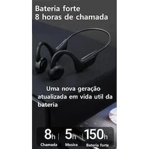 Marca: Byz Fone Com entrada de cartão de memoria Condução Ossea Versão do bluetooth: 5.3 Design sem tato garante saudável, indolor e limpo vestindo Venda quente itens/tocar itens Capacidade da bateria: 200mah Diâmetro do chifre: 18mm Tempo de carregamento: 2h Tempo de conversação: 8h Tempo de jogo: 8h Distância de transmissão: 8-10 metros