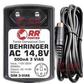 Fonte compatível com mixer mesa de som behringer xenyx eurorack Ac 14,8vac 500ma x2, plug dim 3 vias, com chave de seleção de voltagem 110v/220v Atende os seguintes modelos; Mx-6 Ub1002fx, Ub1202fx, Xenyx 1002fx, Xenyx 1202fx Qx1002usb Qx1202usb Atenção; foto meramente ilustrativa Rrfontes Mxul6 Psu6-ul Marca: Não Informado
