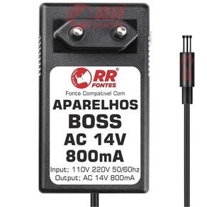 Fonte Compatível Com Pedal, Baterias Eletrônicas e Interface sintetizador Roland Boss AC 14V 800mA Bivolt com chave de seleção de voltagem 110v/220v Atende os seguintes modelos; AF-70 DR-770 DR-880 SP-505 VF-1 GR-33 GR-20 GS-10 JS-5 GT-3 GT-6 GT-6B GT-8 GX-700 ME-8 ME-8B ----FOTO MERAMENTE ILUSTRATIVA---- RRFONTES BRC-120 Marca: Não Informado