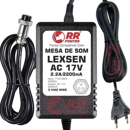 Fonte Compativel Com Mesa Som Lexsen Pró AC 17V 2200mA Bivolt com chave de seleção de voltagem 110v/220v Pm-16es M802fx M1202fx M1642fx M2442fx Pro3242fx usb FOTO MERAMENTE ILUSTRATIVA RRFONTES Marca: Rrfontes Comércios De Eletrônicos Ean: 7891698840435