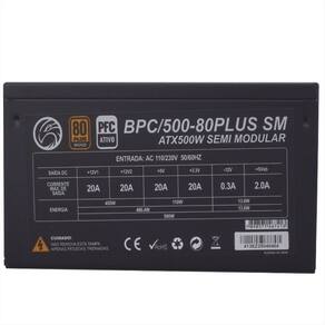 Produto: Fonte 500W Brazil PC BPC/500-80PLUS/B - ATX - Semimodular - PFC Ativo - 80 Plus Bronze - Preto - Bivolt Automático