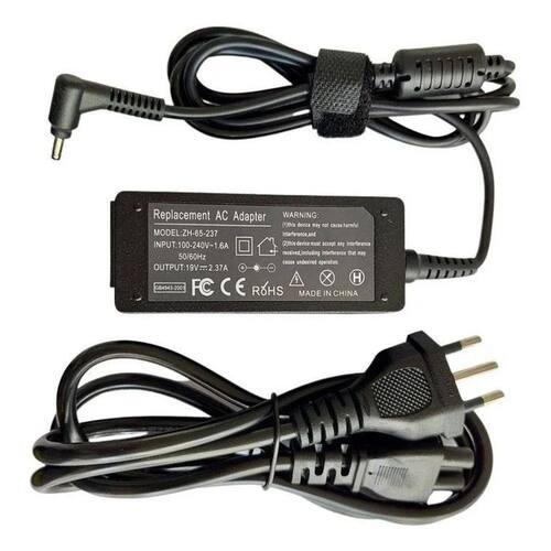 Este carregador possui as seguintes especificações técnicas: entrada AC 100-240V, 50-60Hz e saída DC 19V 2,37A - 45W. O plugue é de 3,0x1,0mm, tornando-o compatível com o seu Acer Aspire.