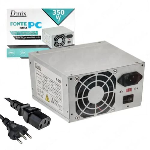 - Marca: Dmix / Dex - Modelo: A-350 - Potência 350w - Bivolt chaveamento manual - Eficiência 70% - MTBF de 100.000 horas 25C - Proteção contra curto circuito OVP / OCP / SCP - Chaveamento manual 110 / 220V - Ventilador de 80 mm ultra silencioso - Cabos com capa de proteção - Acompanha Cabo de Força 110cm de comprimento - Normas técnicas IEC60950 segurança elétrica e IEC61000 segurança eletromagnética