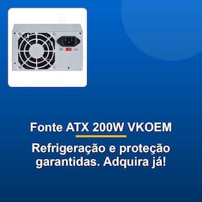Encontre a Fonte ATX 200W VKOEM Caixa Colmeia Com 10 Unidades e deixe seu PC funcionando com estabilidade, segurança e eficiência!